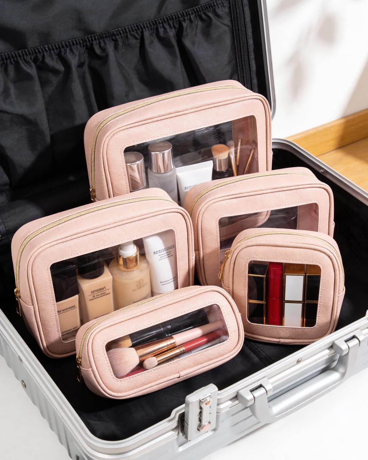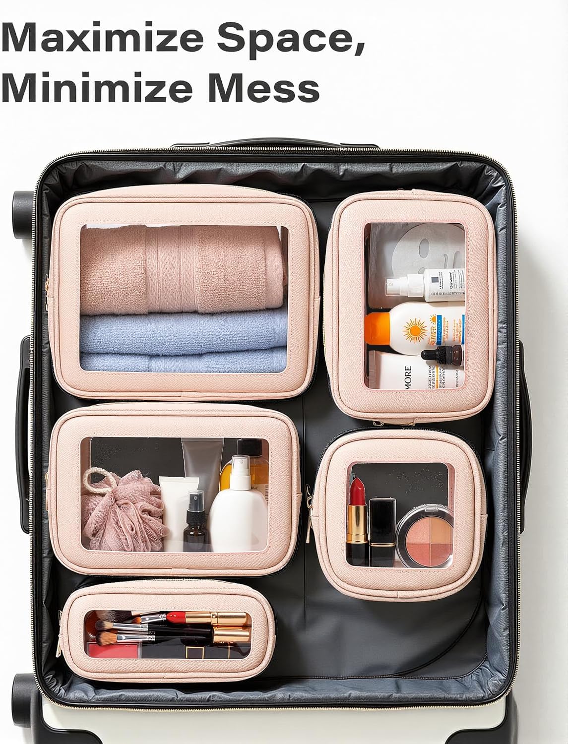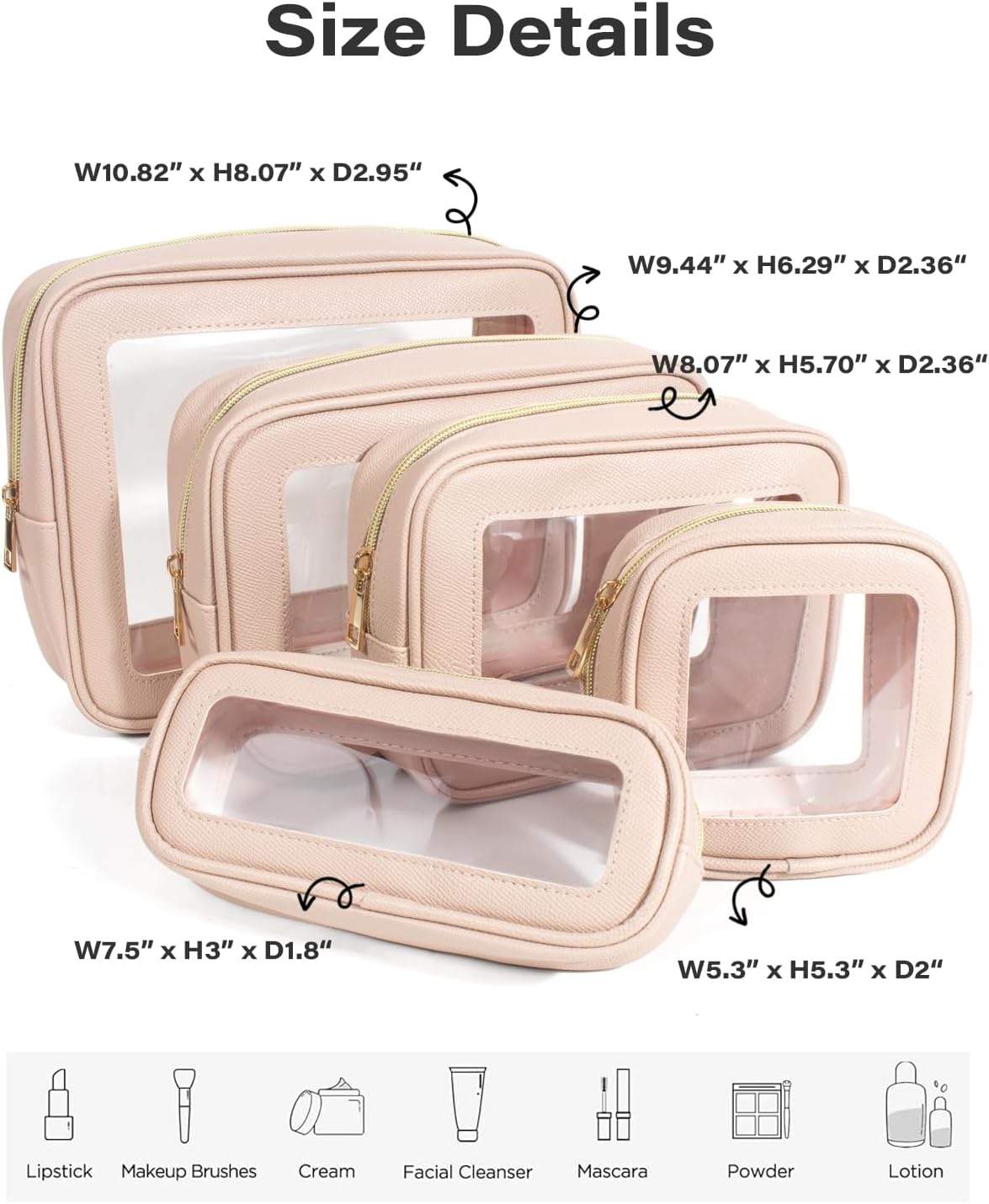 5Pcs Diaper Bag Organizer Pouch Set, Waterproof Travel Clear Makeup Bag Set for Women Small Toiletry Bag Travel Packing Organizer Bags Cosmetic Case with Zipper Compact Car Organizer Bag (Pink Set)
