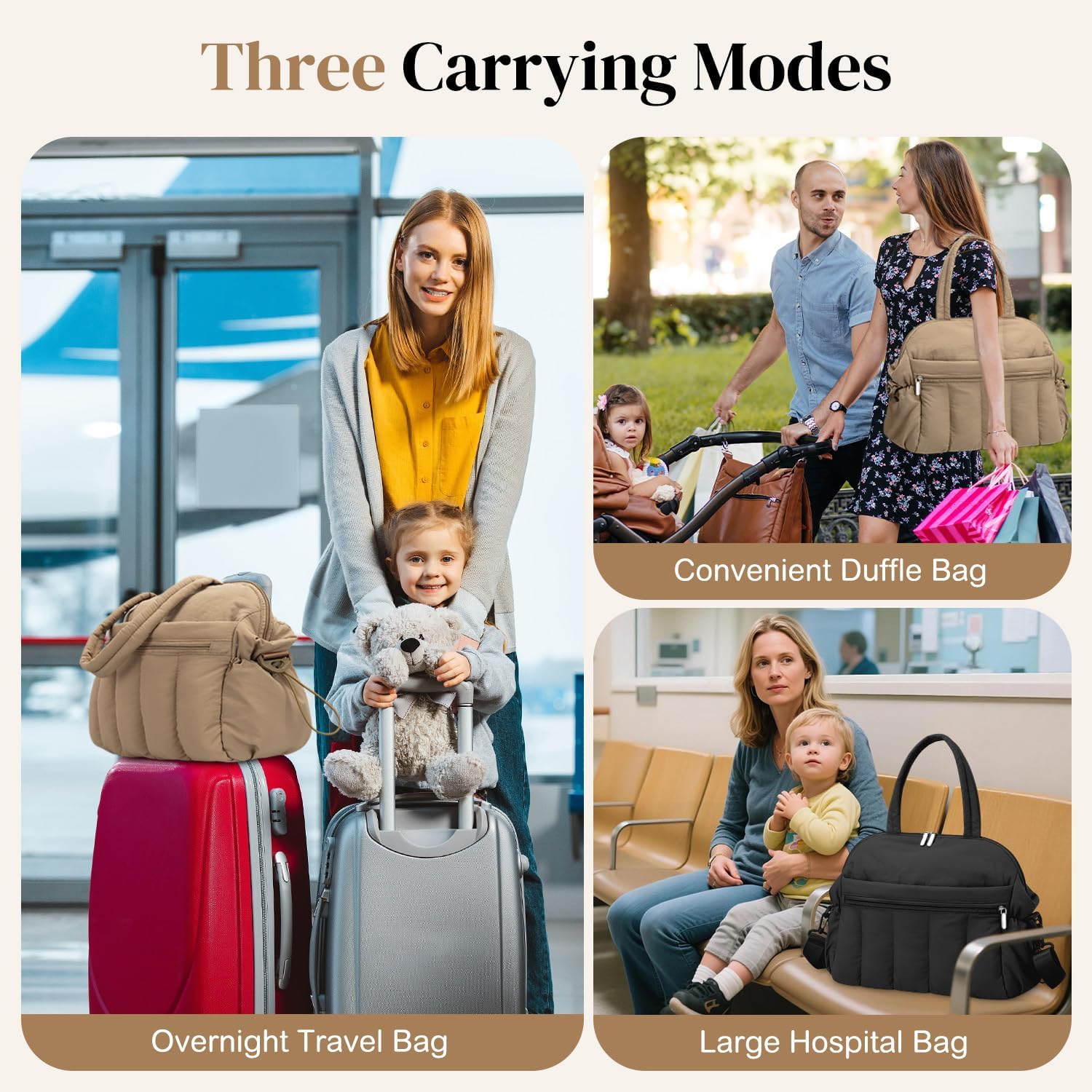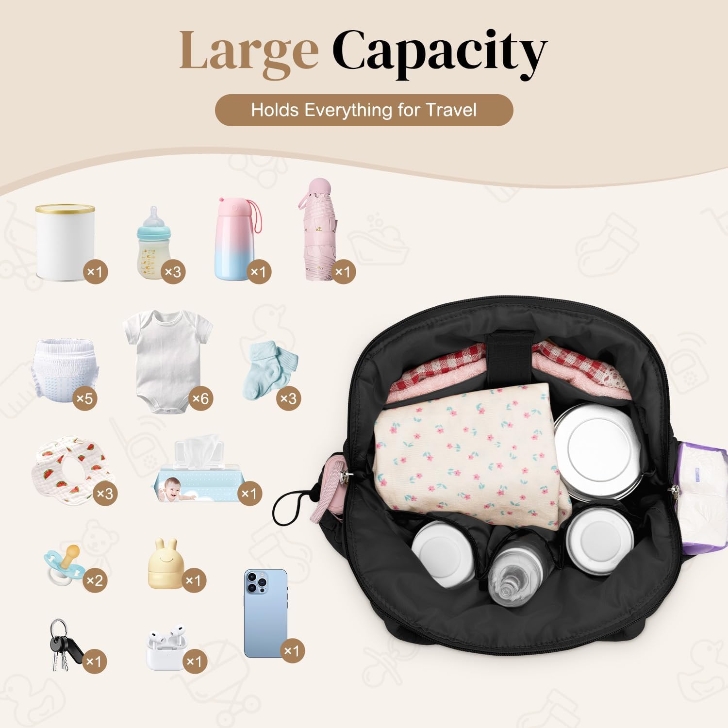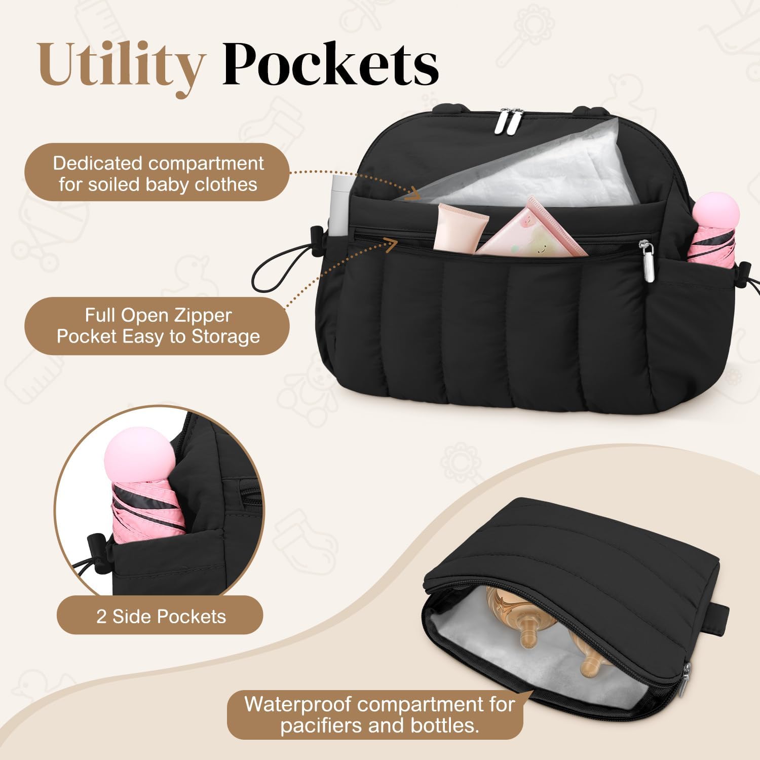 GOBABYMART Diaper Bag Backpack, Medium Maternity baby bag & Changing Pad, Insulated Pockets, Stroller Straps & Pacifier Case (Medium – Beige Bears)