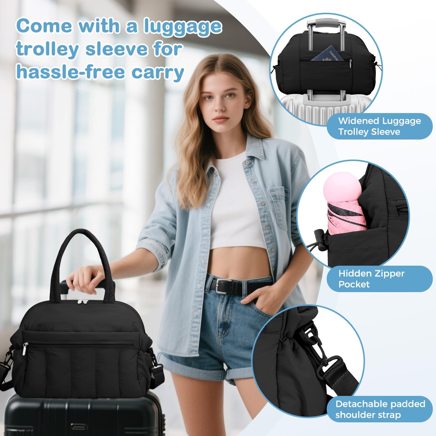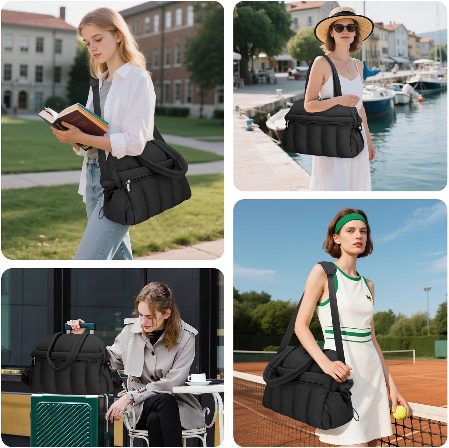 TOPDesign Puffer Tote Bag for Women, Lightweight Puffy Handbag with Compartments, Quilted Shoulder Bag for Work, Travel, Gym