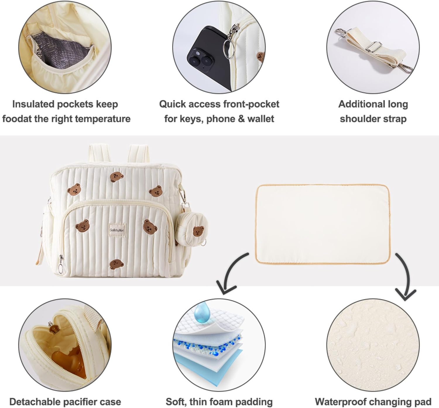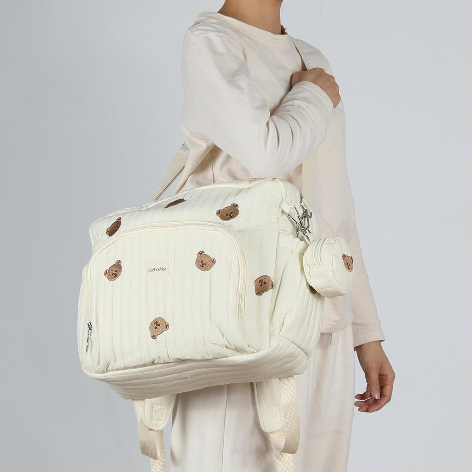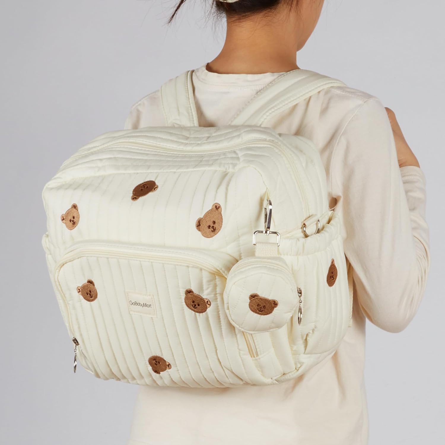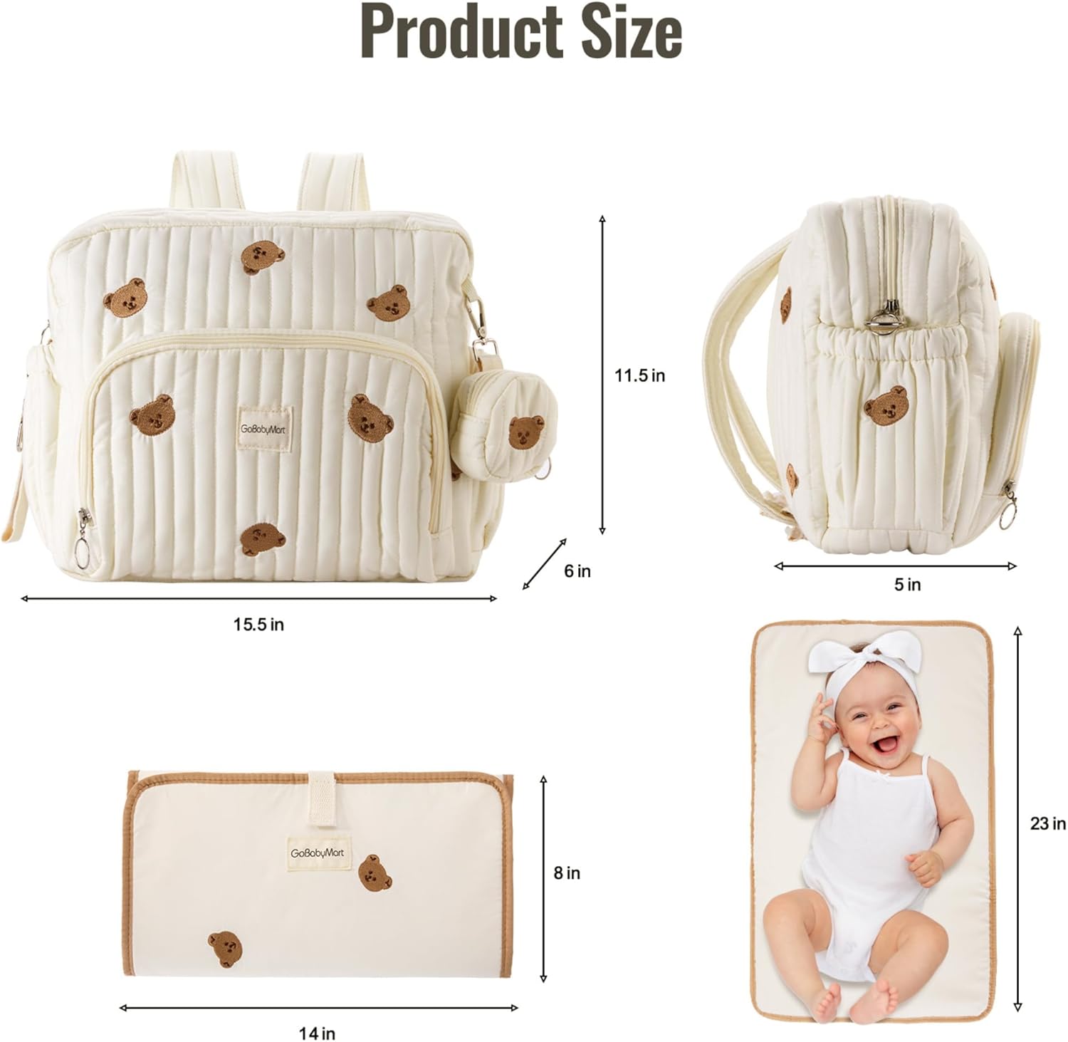 GOBABYMART Diaper Bag Backpack, Medium Maternity baby bag & Changing Pad, Insulated Pockets, Stroller Straps & Pacifier Case (Medium – Beige Bears)