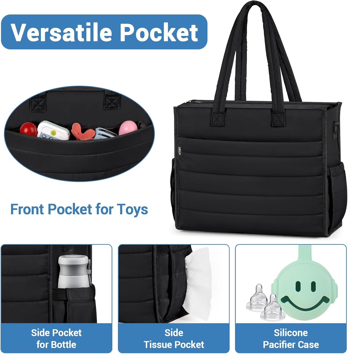 Tuwubi Diaper Bag Tote,Baby Diaper Bag with Pacifier Case Large Travel Diaper Tote Caddy for Mom and Dad Multifunction Large Baby Bag – M-Black