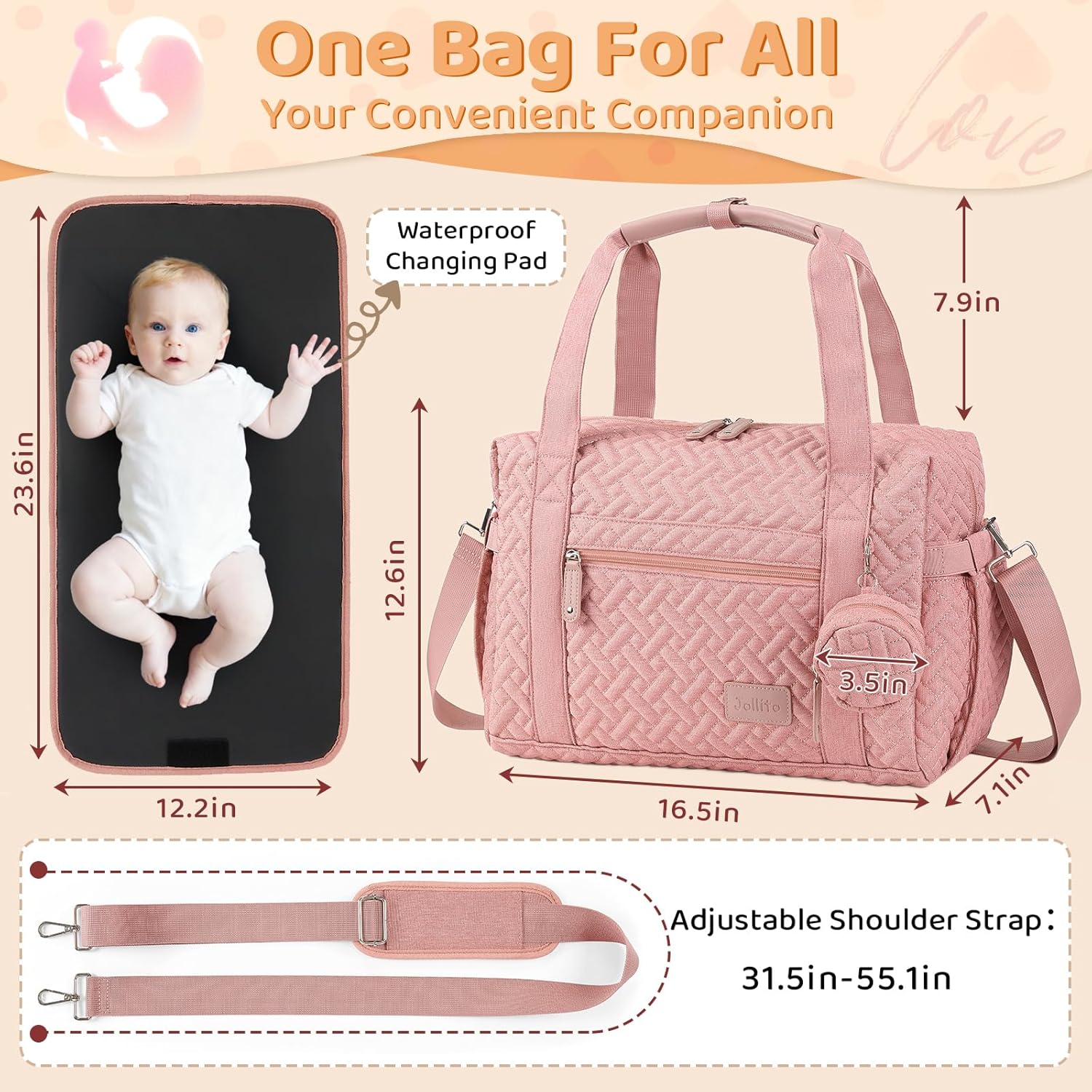 Be the first to review “JOLLITO Diaper Bag Tote, Large Capacity Travel Diaper Bags With Changing Pad, Hospital Bag For Labor Delivery, Baby Bag” Cancel reply