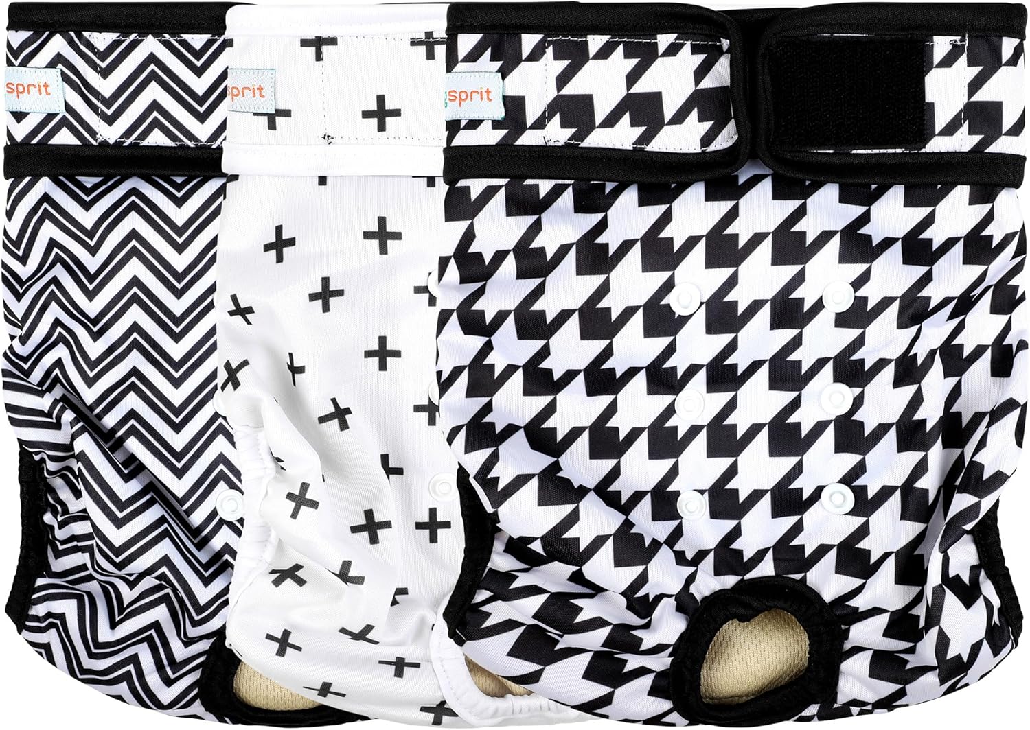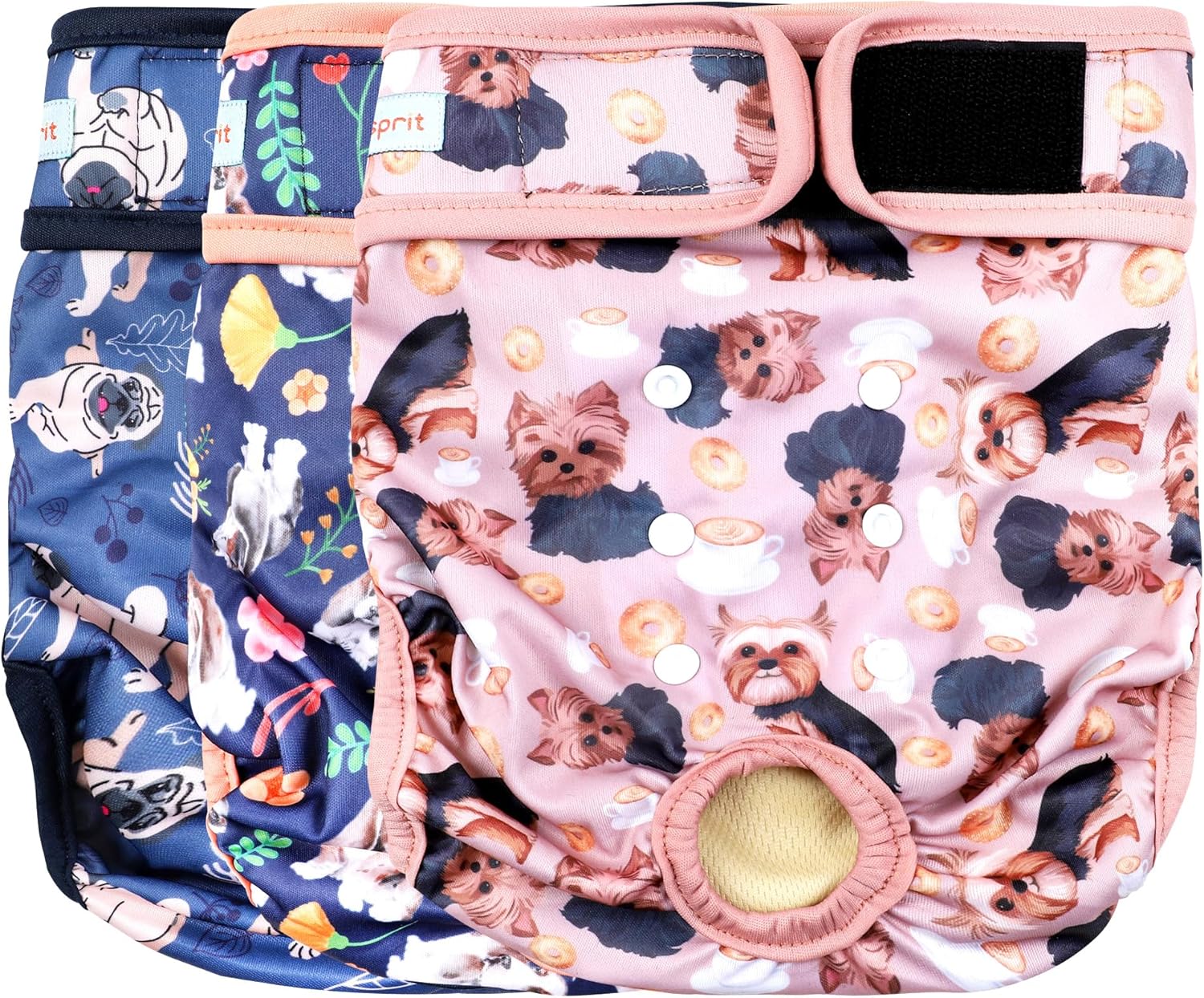 The reusable dog diapers female have extra snap buttons at the back, snap below & down for shortening length of diaper, snap left & right to adjust baggy excess fabric, give dog more comfortable and great fit.