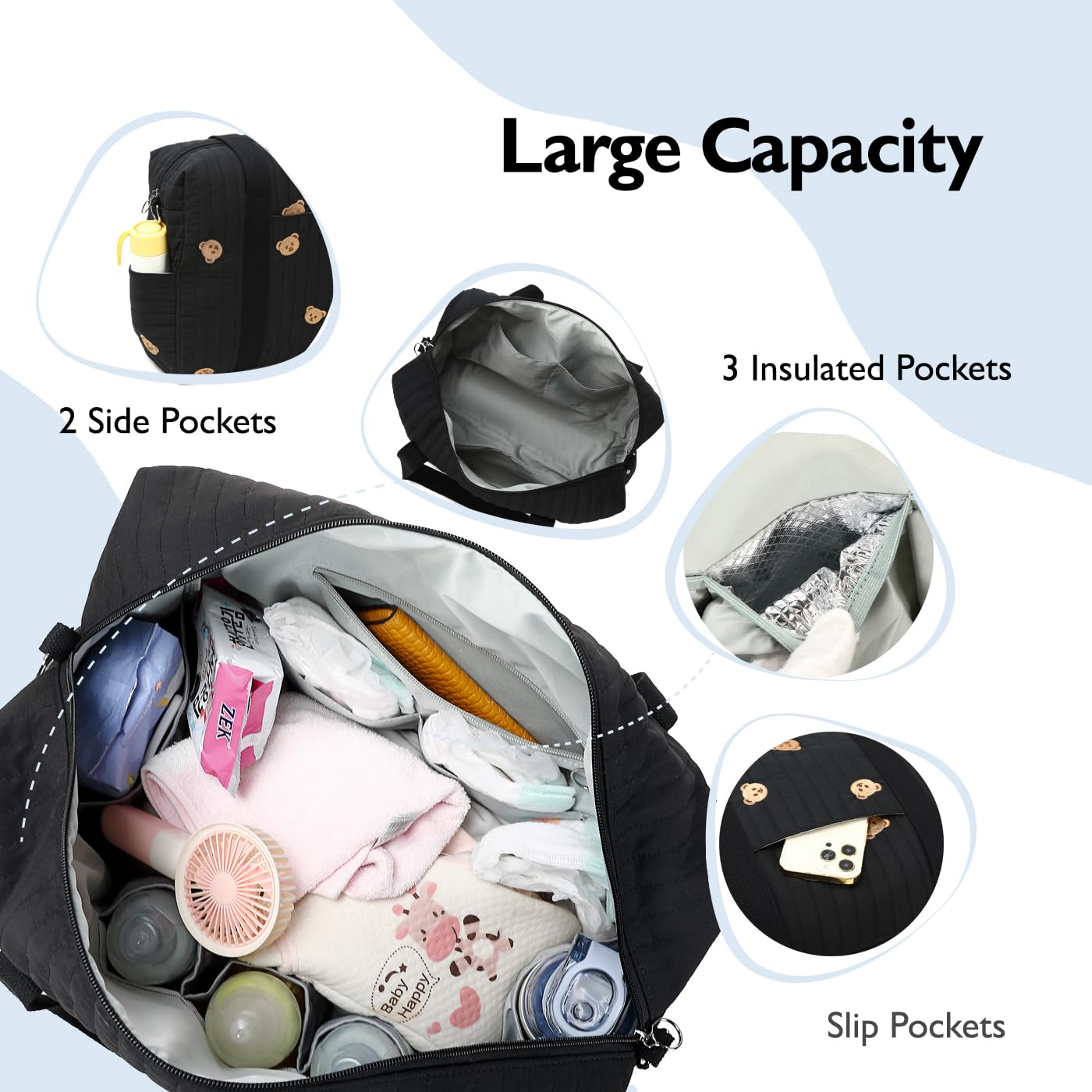 Femuar Diaper Bag Backpack Multifunction Maternity Nappy Baby Bag for Girls & Boys Large Capacity Travel Diaper Bags Dark Black