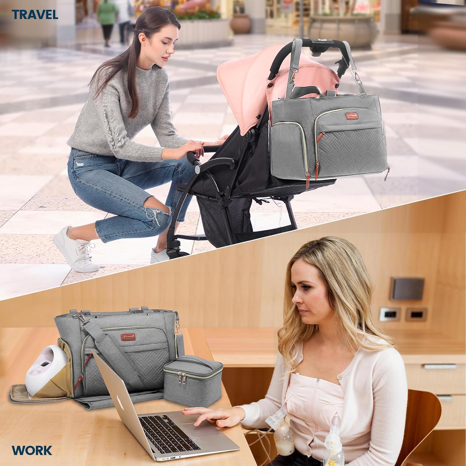 - Versatility: Not only is a work bag for pump,but also a diaper bag for trips out.