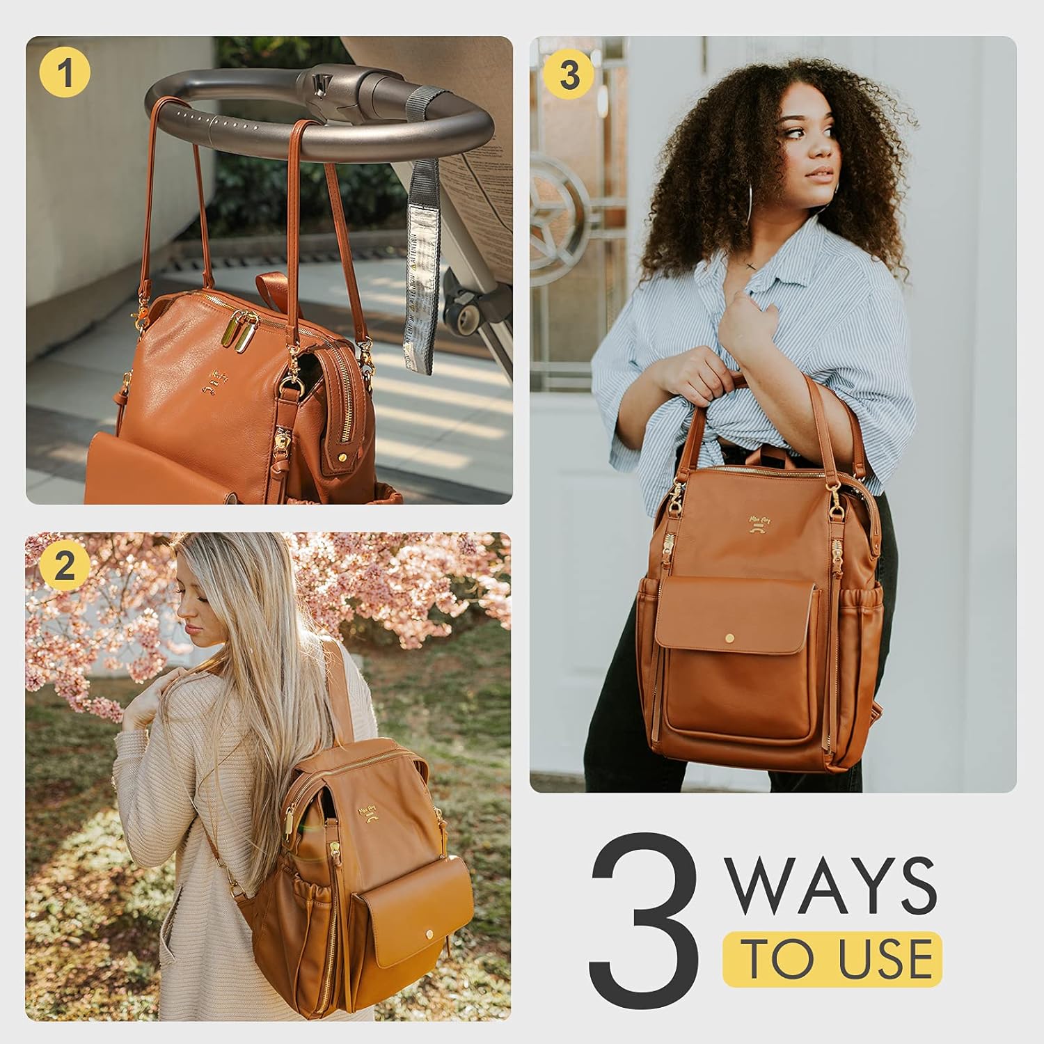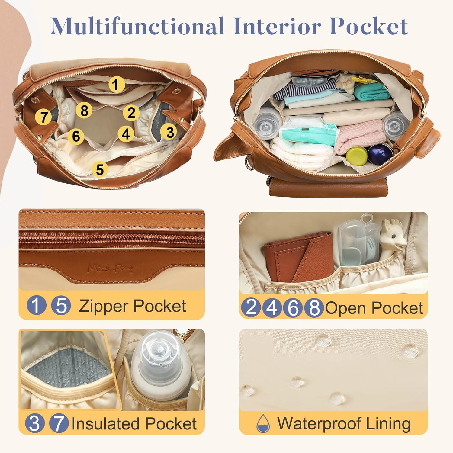 miss fong Diaper Bag Backpack Baby Diaper Bag for Girls and Boys, Leather Purse with 13 Pockets Diaper Bag Organizer,Changing Pad,Stroller Straps,4 Insulated Pockets
