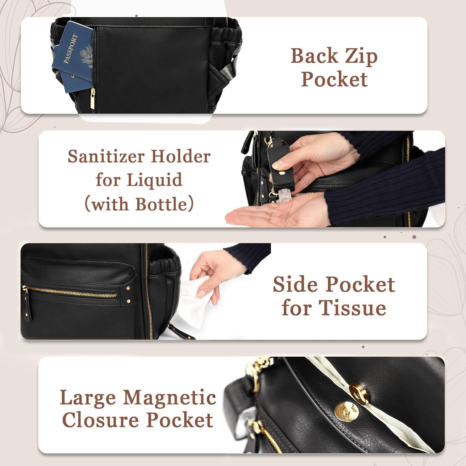 miss fong Small Diaper Bag Mini Diaper Bag Backpack Mini Backpack with 11 Pockets Baby Diaper Bag with Hand Sanitizer Holder, 2 Insulated Pockets-BALCK