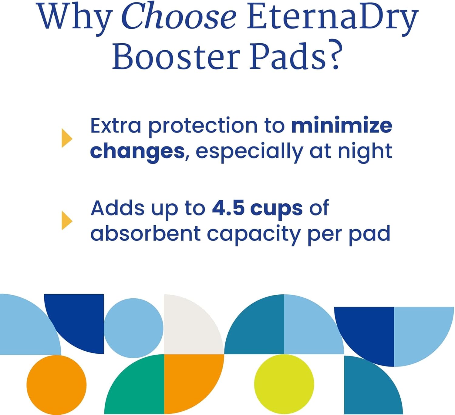 NorthShore's EternaDry Booster Pad diaper doublers are designed to extend the life of diapers by adding absorbency which is especially useful at night. These soft, flow-through pads feature our Microsorb lining that is designed to fill to capacity and then pass additional fluid into the diaper or pull-on. It is softer and slimmer than most other booster pads yet features advanced absorbency and odor protection. Economically extend the use of any diaper while keeping skin drier, free from rashes and reducing linen changes. Contains super-absorbent polymers that lock away wetness into odor-free gel.