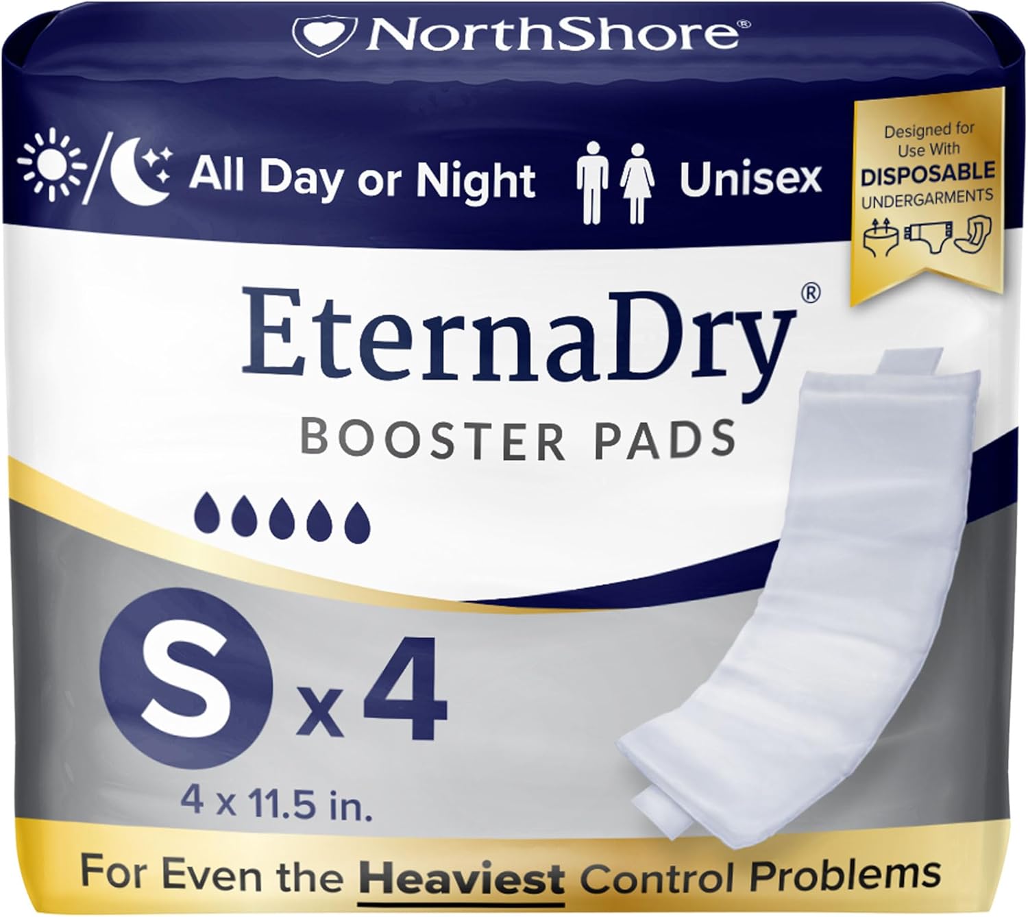 NorthShore EternaDry Booster Pads for Men and Women with Adhesive, Medium, Pack/30