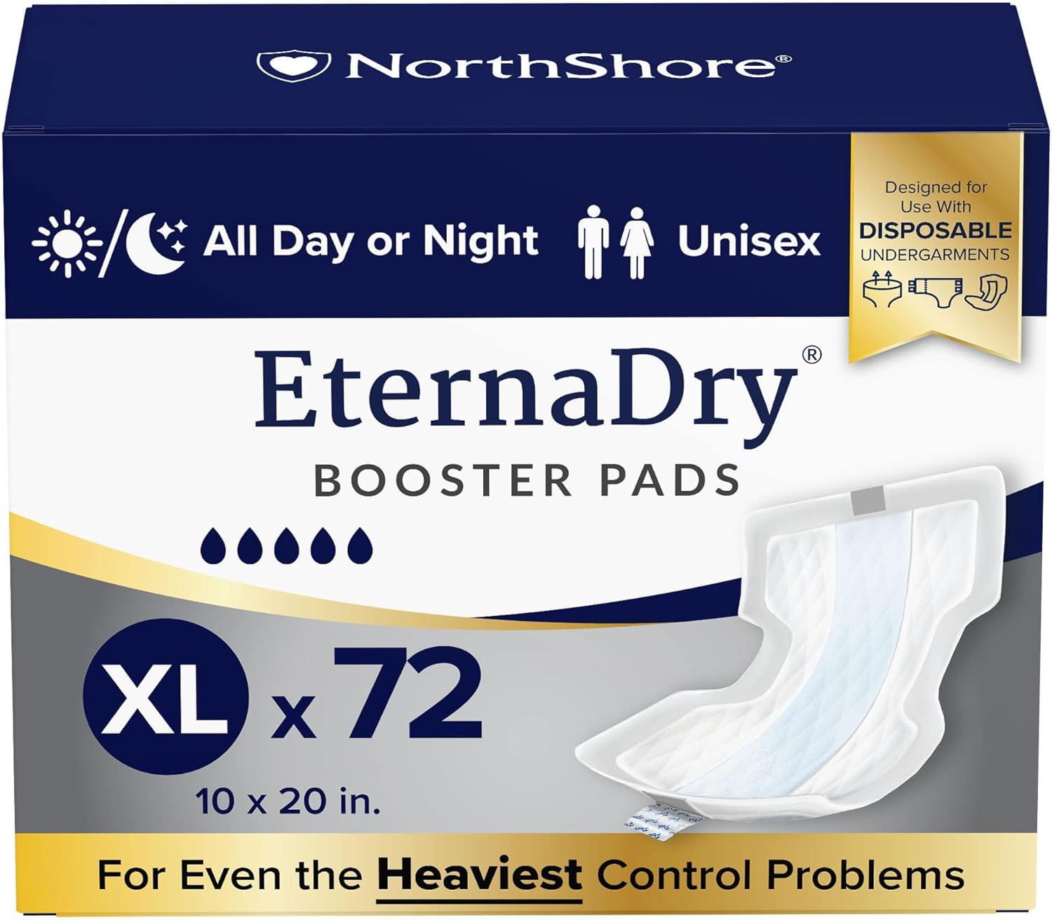 NorthShore EternaDry Booster Pads with Adhesive, X-Large, Pack/12