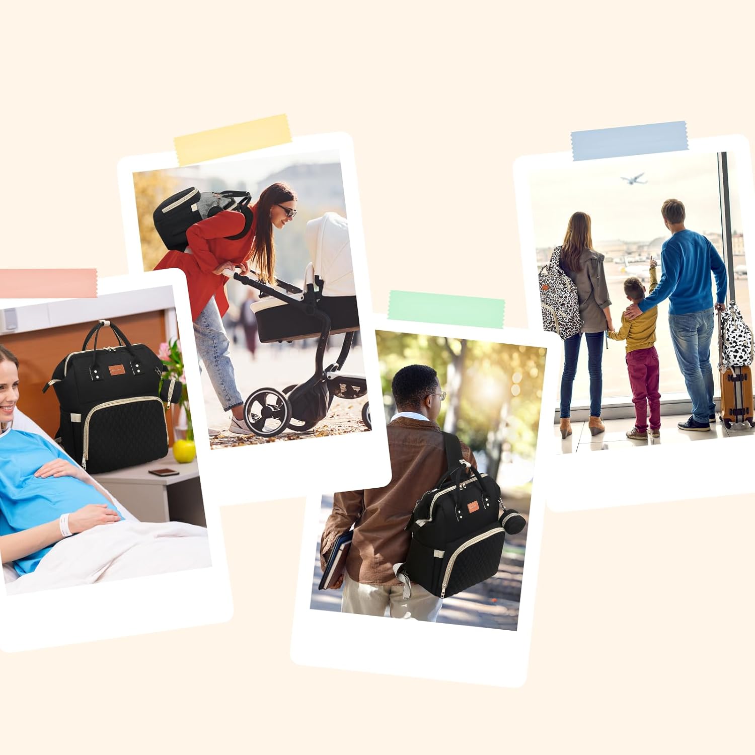 Tonyeee Diaper Bag Tote, Large Diaper Bags Waterproof, Hospital Bag for Labor Delivery, Baby Bag with Pacifier Case, Travel Diaper Tote with Changing Pad, Black