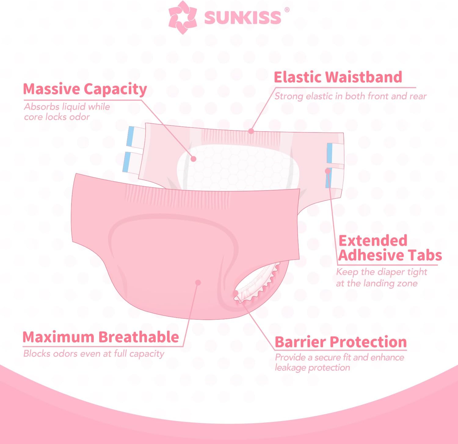 Be the first to review “SUNKISS Masterpiece Adult Diapers with Tabs, Unisex Disposable Incontinence Briefs for Women and Men, Odor Control, Pink, Large/XLarge, Previously Large,10 Count”