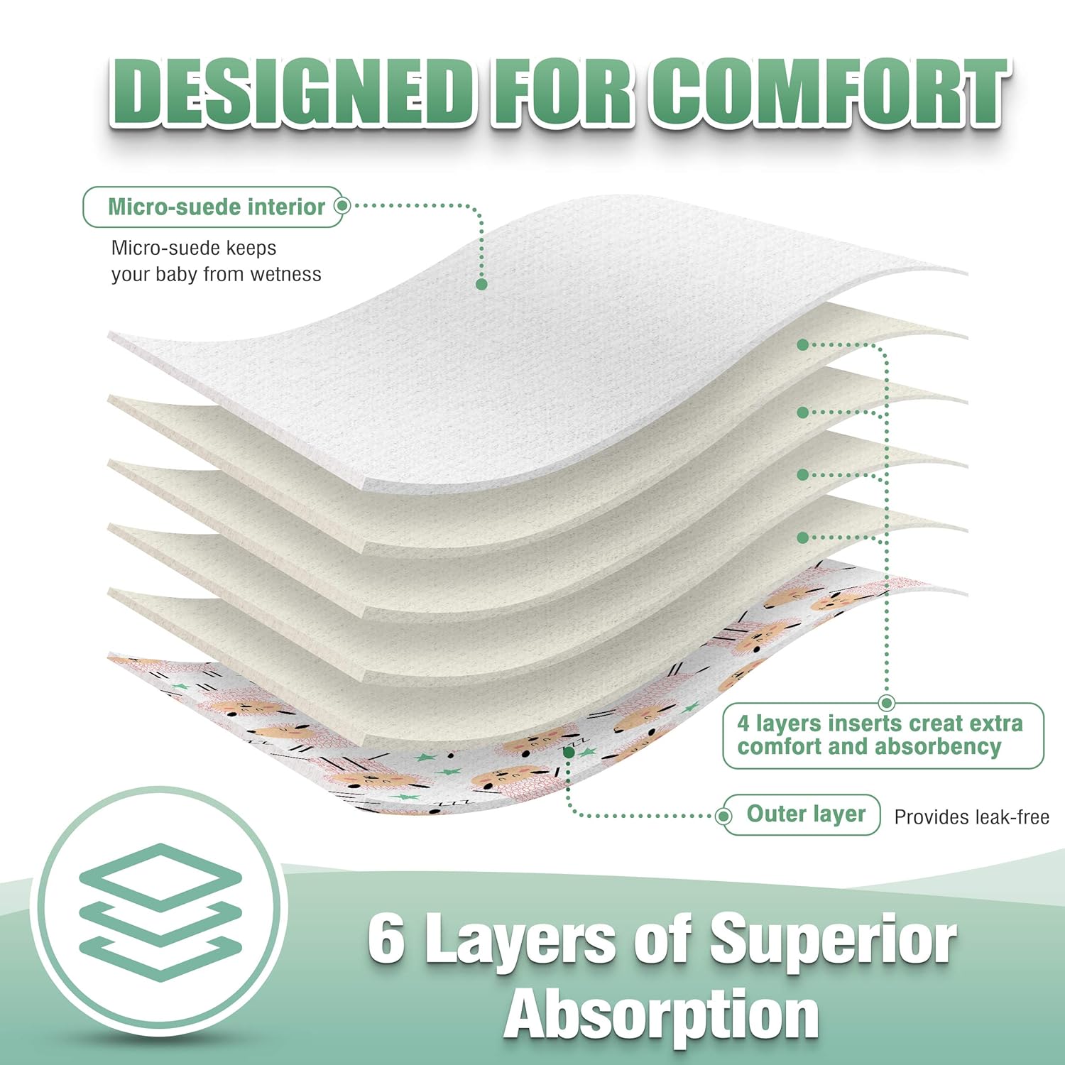 The super soft inner suede cloth wicks moisture away from baby's bottom to the insert to help keep your baby comfortable, avoid less rashes day and night. Your babies would be happier when the diapers always felt lighter and let them move freely.