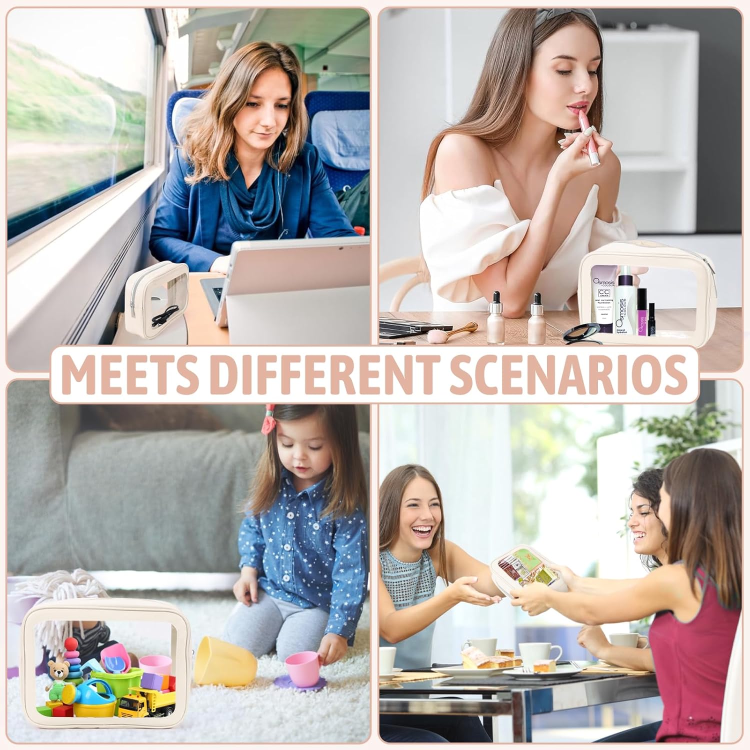 YOPCDJ 5PCS Diaper Bag Organizer Pouch Set, TSA Approved Toiletry Bag,Clear Waterproof TPU Makeup Bag Set Travel Organizer Bags for Women and Kids Valentines Day Gifts